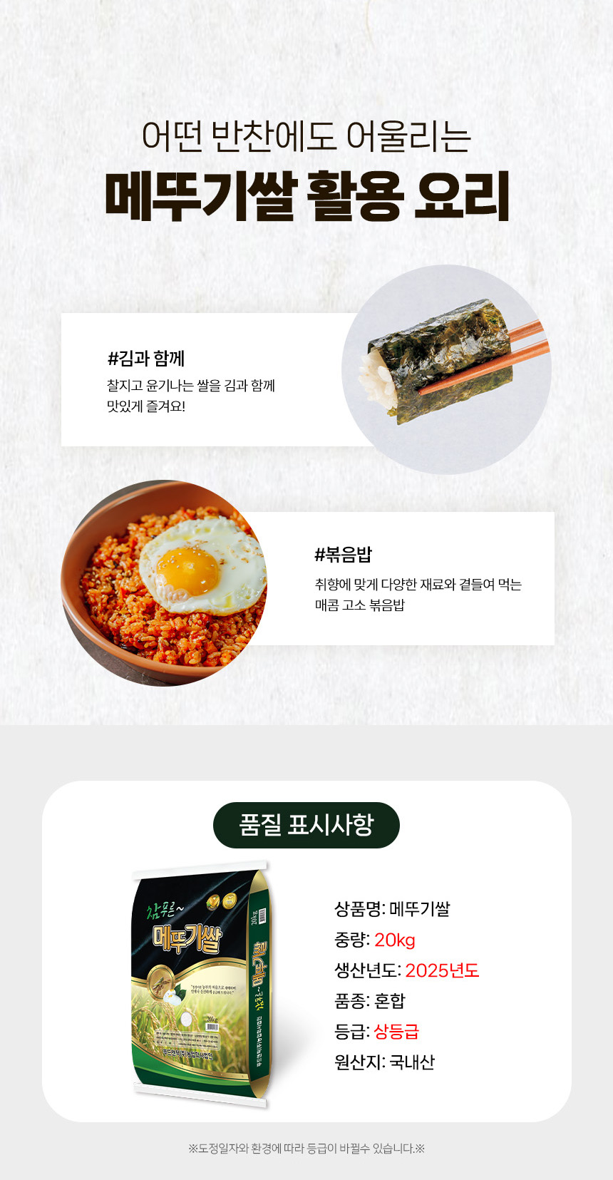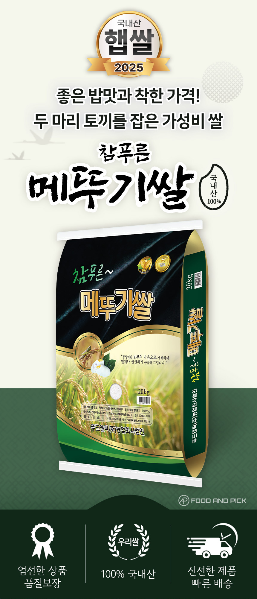 참푸른 메뚜기쌀(상급/25년) 20kg