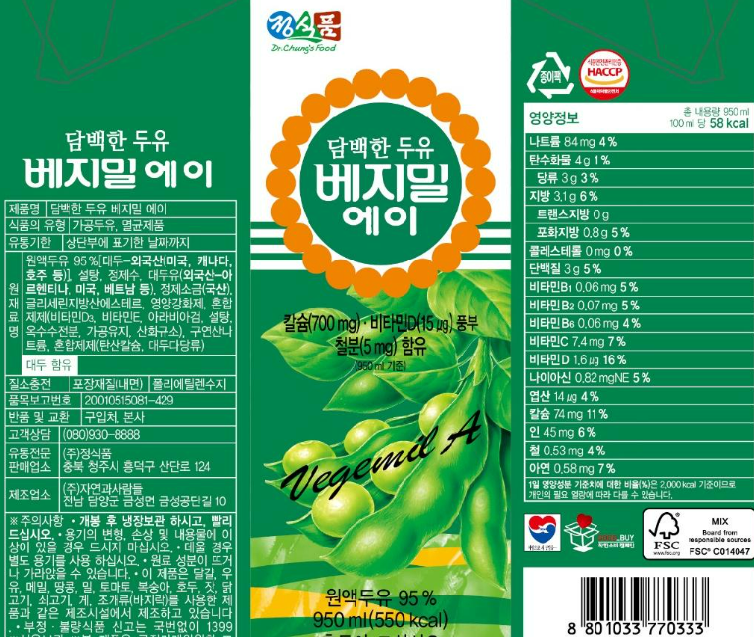 정식품 베지밀(A/팩) 950mL 이미지