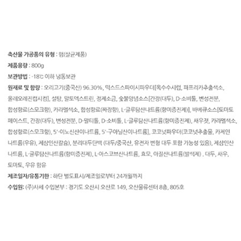 사세 훈제오리(슬라이스 800g/EA)