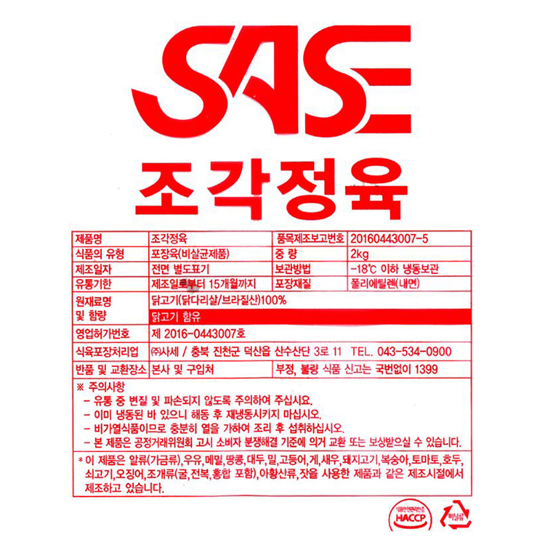사세 조각정육(닭다리살100% 2Kg/EA)