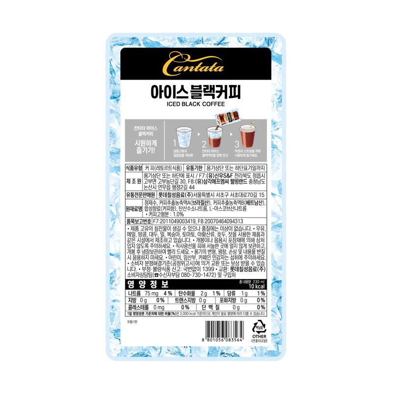 롯데칠성 칸타타아이스블랙(230ml*10ea 2.3Kg/BOX) 이미지