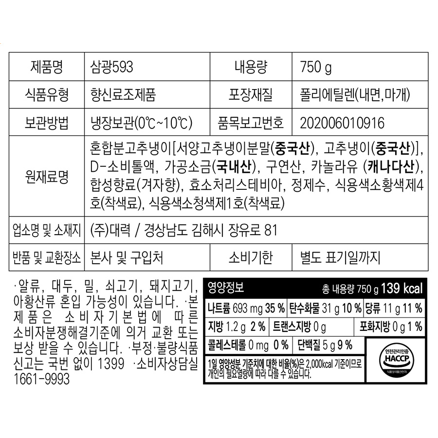 원재료명 및 함량