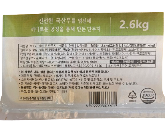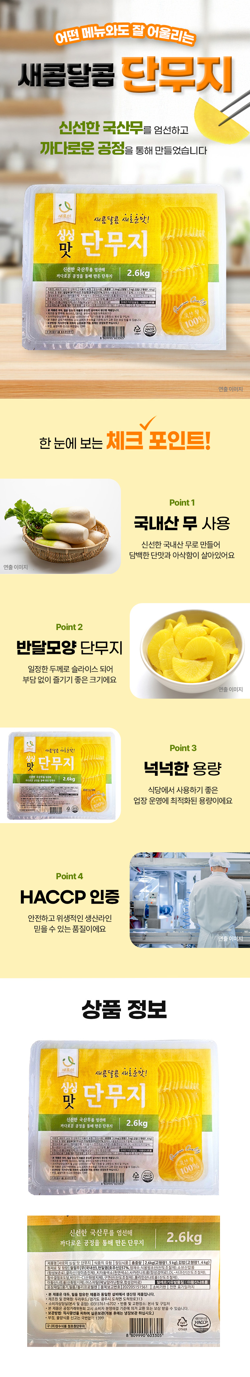 ★초특가★ 새로미 싱싱맛단무지(반달 2.6Kg/EA) 업소용 대용량 반달 단무지 이미지