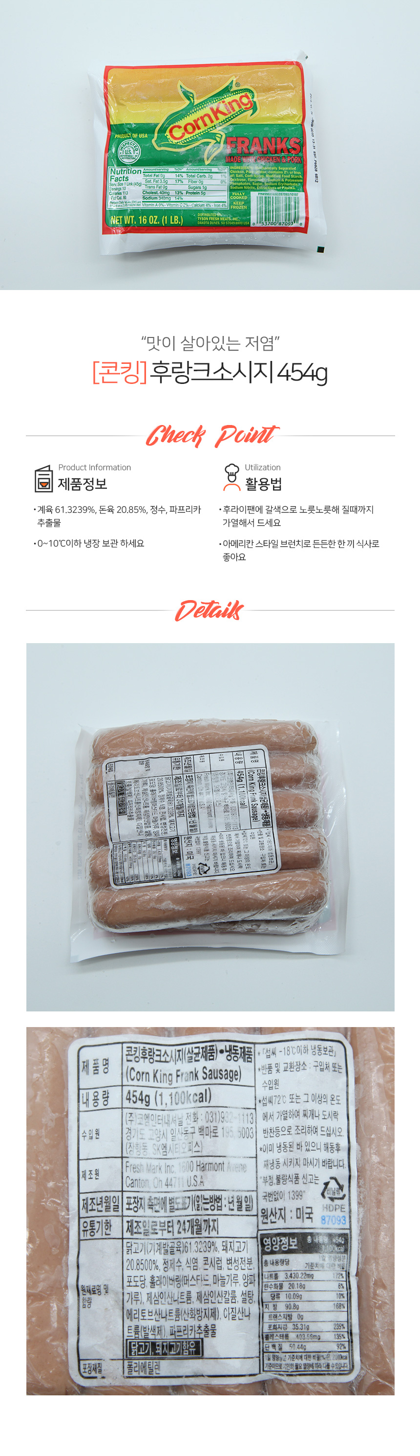 콘킹 냉동 후랑크 소시지 저염 454g 이미지