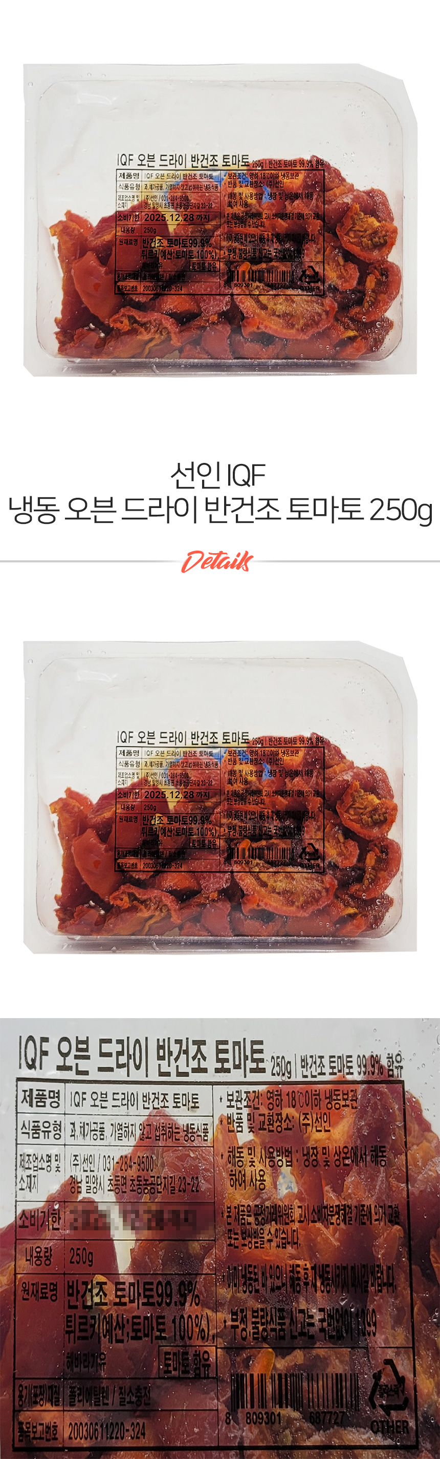 선인 IQF 냉동 오븐 드라이 반건조 토마토 250g