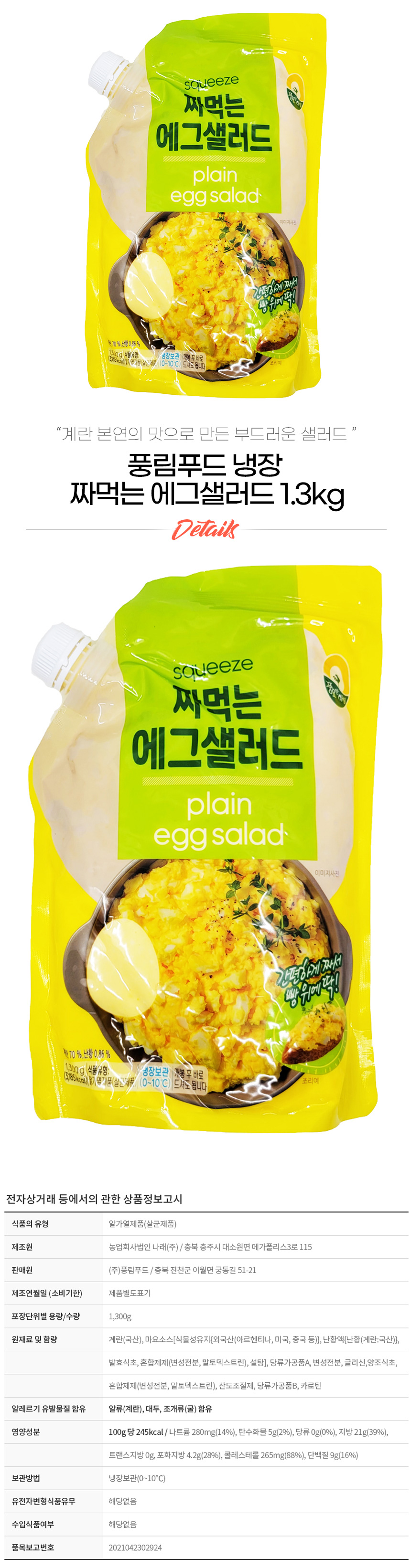 풍림 냉장 짜먹는 에그샐러드 1.3kg 이미지