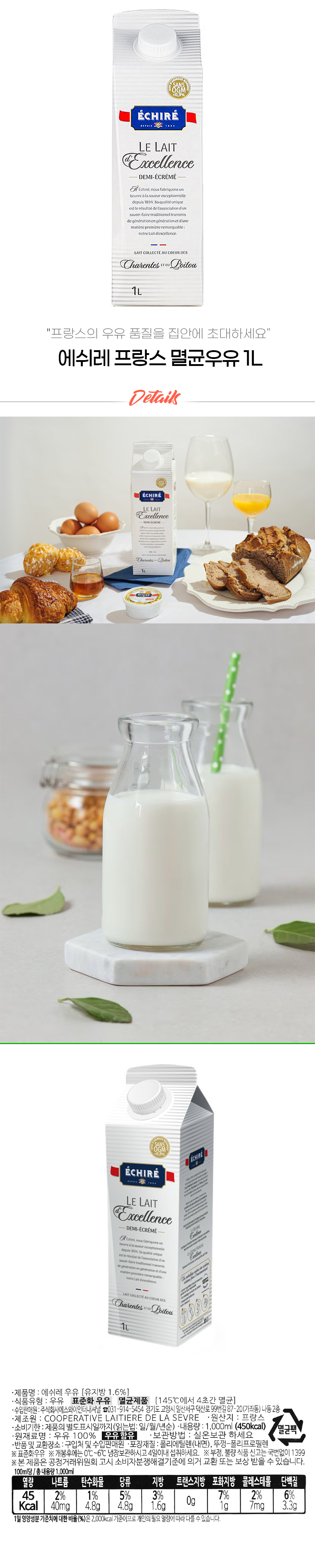에쉬레 프랑스 멸균우유 1L (상온) 이미지