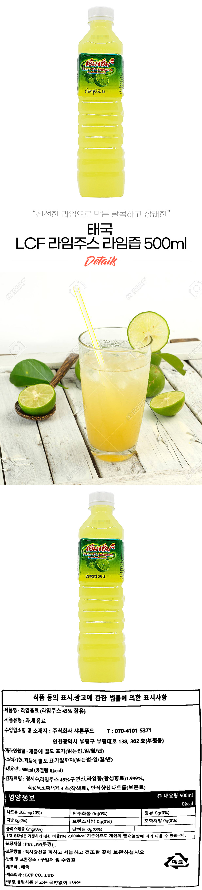 태국 LCF 라임주스 라임즙 500ml (상온) 이미지