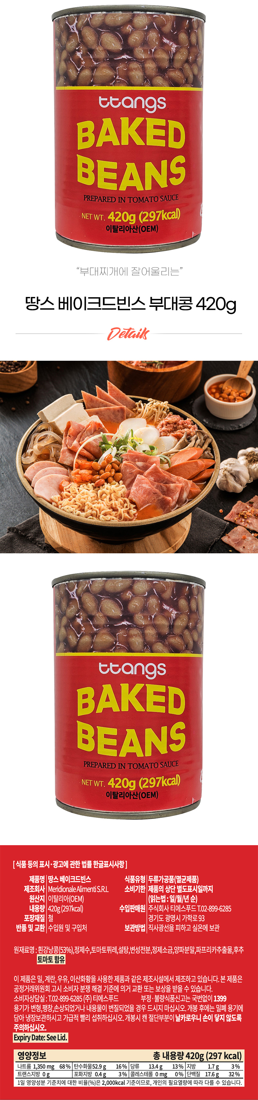 땅스 베이키드빈스 부대찌개콩 420g (상온)