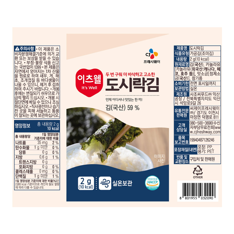 ★초특가★ 이츠웰 미니 도시락김(8절6매_2g*10봉*24입 480g/BOX) 이미지