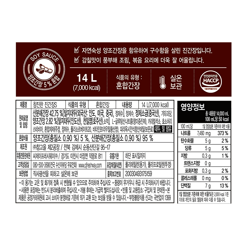 프레시원 참진한진간장(14L 14Kg/EA) 이미지