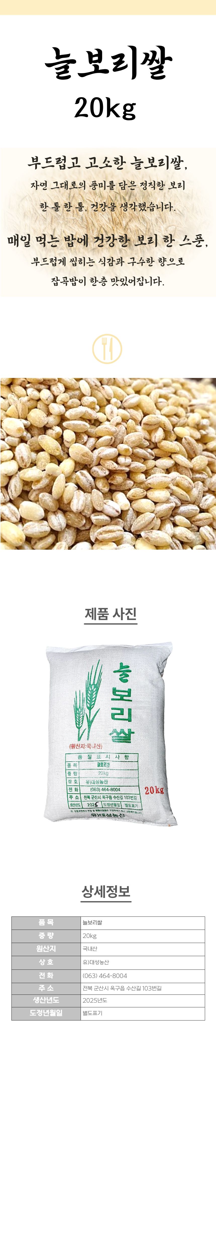 25년산 늘보리쌀 20kg 국내산 보리 쌀