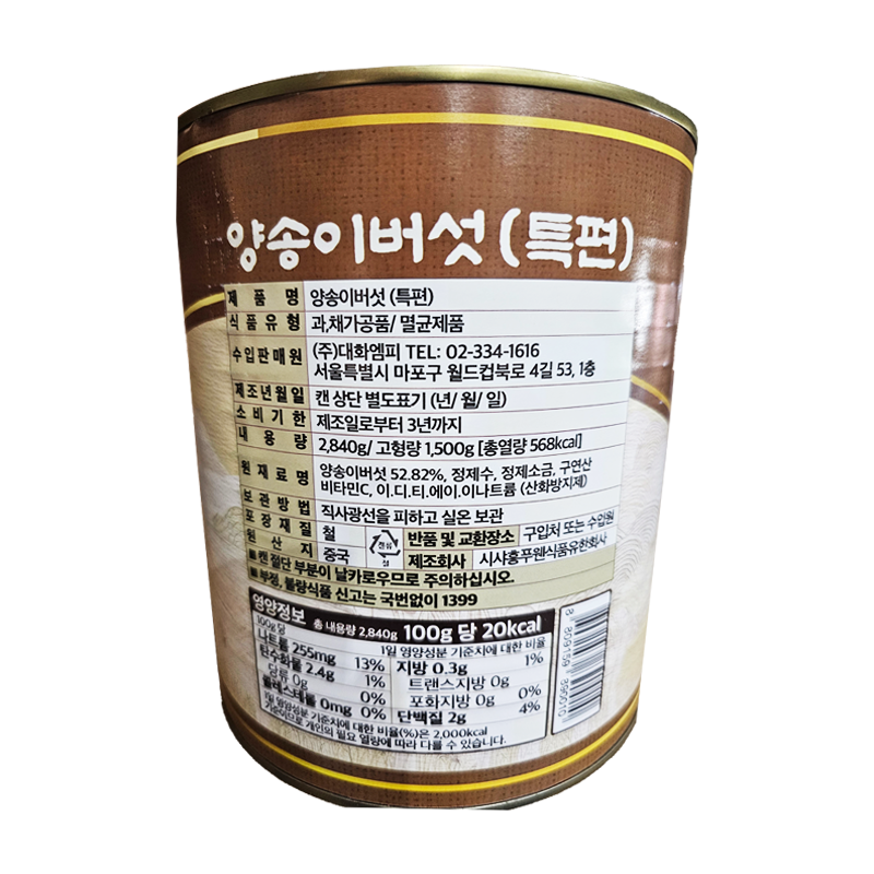 대화엠피 양송이슬라이스(특편 2.84Kg/EA)