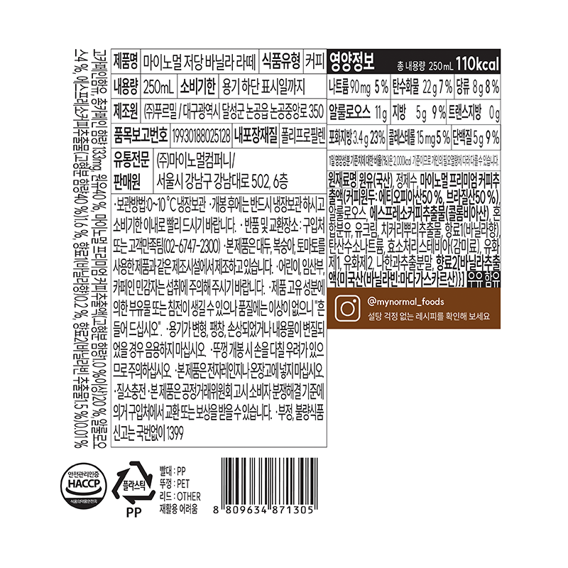 마이노멀 바닐라라떼(250ml_저당 250g/EA)