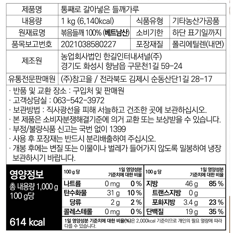 참고을 들깨가루(통째로갈아넣은 1Kg/EA)