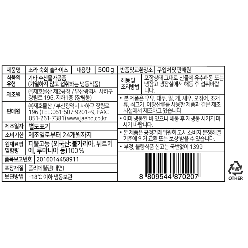 소라숙회(슬라이스 500g/EA) 이미지