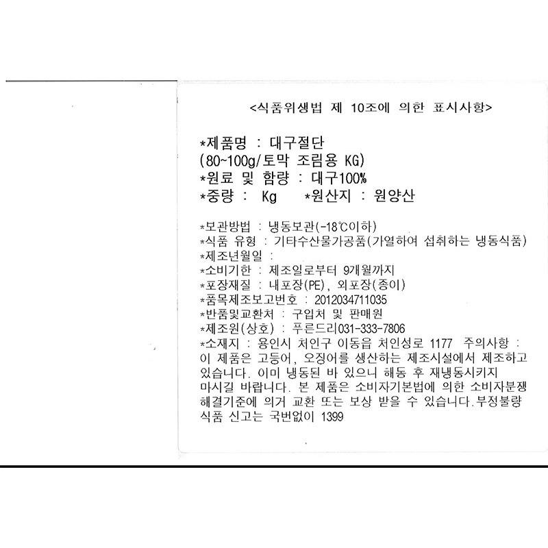 푸른드리 대구코다리(80~100g/토막 조림용 KG) 이미지