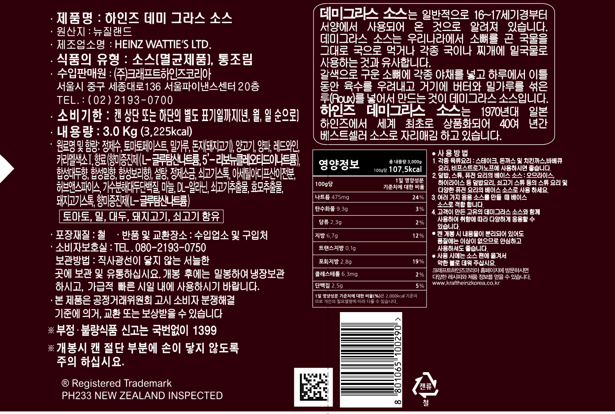 (실온)데미그라스소스 3kg_하인즈 이미지