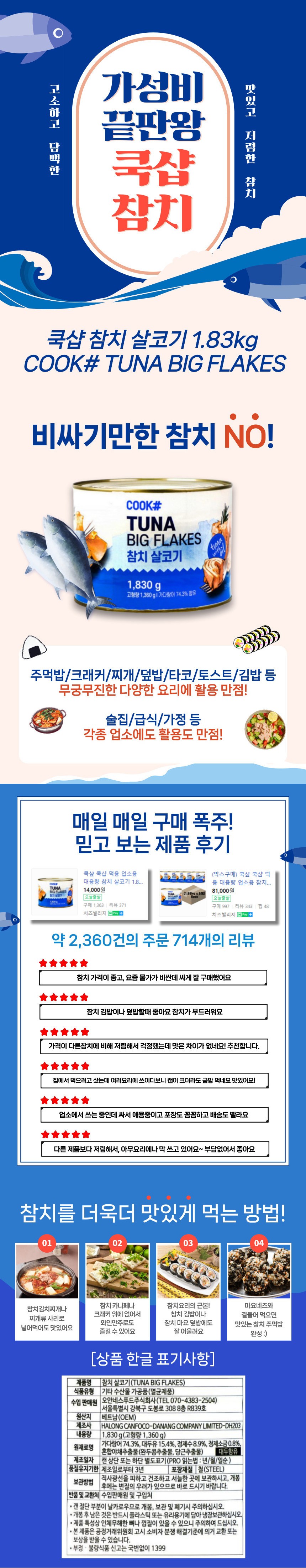 [BOX할인] 쿡샵 참치 살코기 1.83kg 찌개 덮밥 카나페 참치김밥 6개 이미지