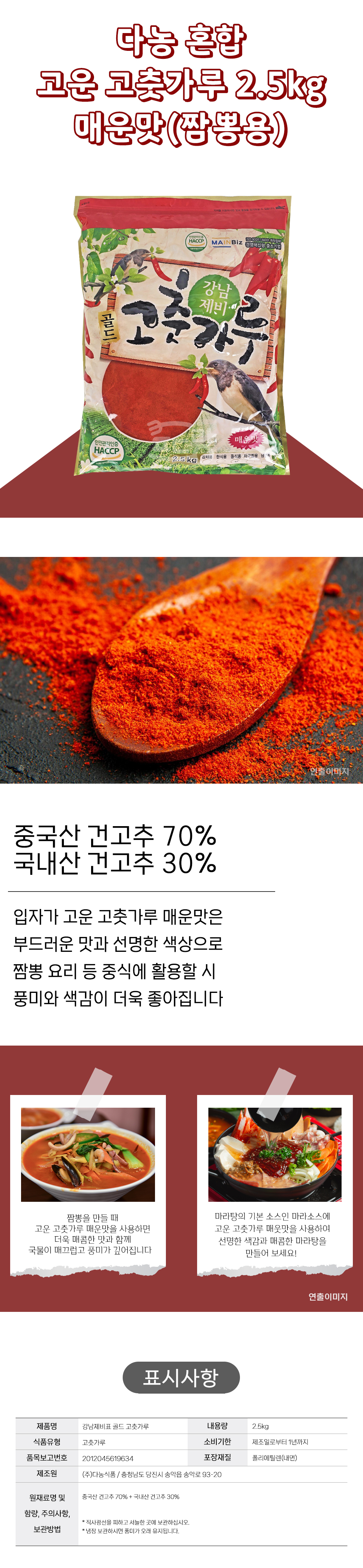 ![고춧가루[다농(국산중국산혼합7:3)매운맛,고은] 2.5kg(칠대삼매다) 이미지](https://content.foodspring.co.kr/vendor/859/images/74_9434907262_r.jpg?f=webp&s=876x876&t=inside)