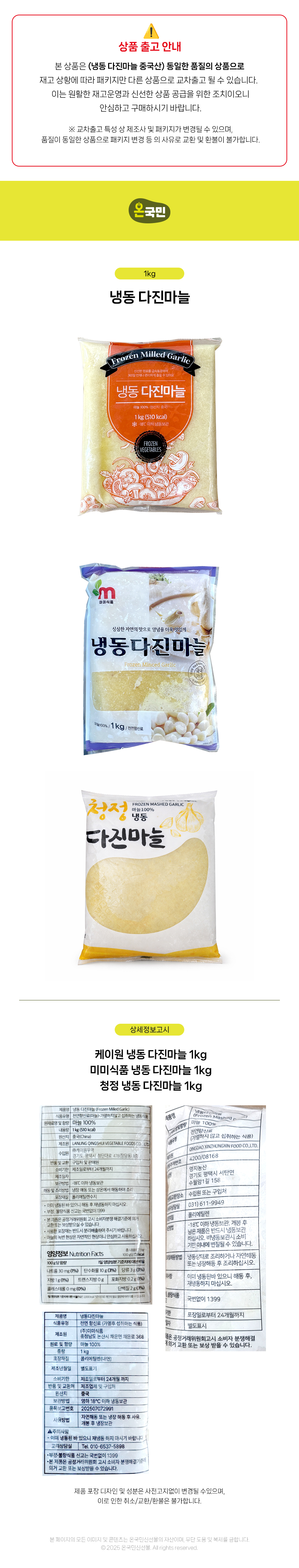 ♥첫구매♥ [교차출고]청정 냉동 다진마늘 1kg