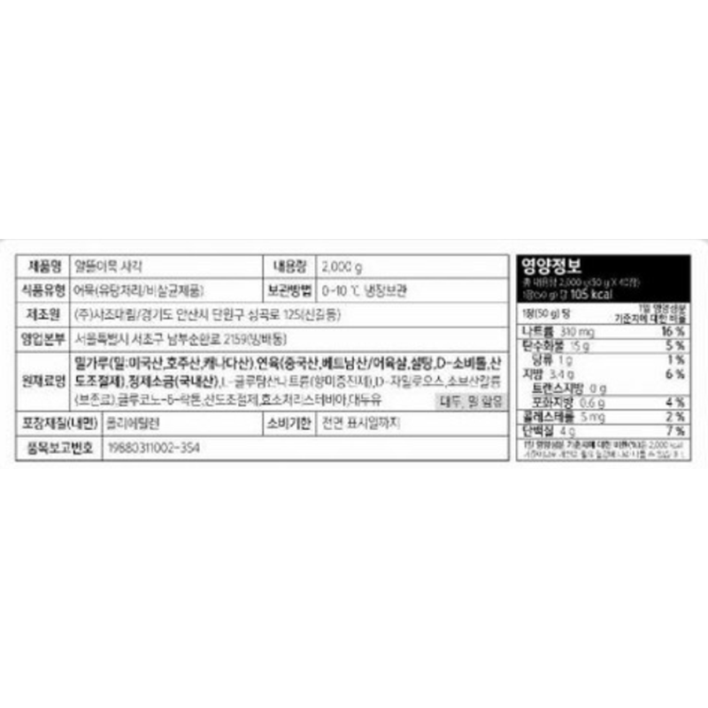 사조대림 알뜰어묵사각(2Kg/EA)