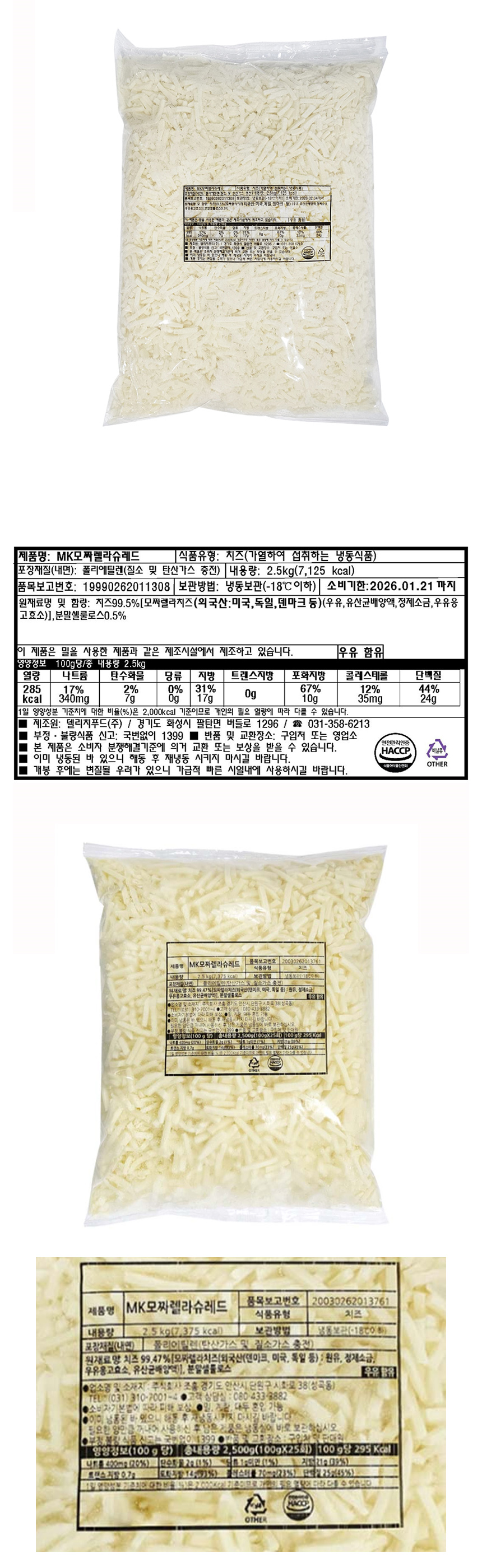 ★2월 첫구매★ 델리치 모짜렐라 치즈 2.5kg (자연 99%) 네츄럴 치즈