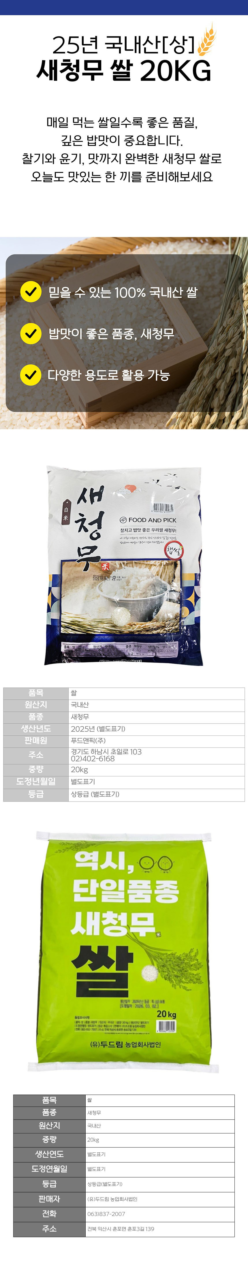 ★4월 첫구매★ [새청무 교차출고][25년 단일미] 신동진 쌀 20kg [상등급,단일품종]