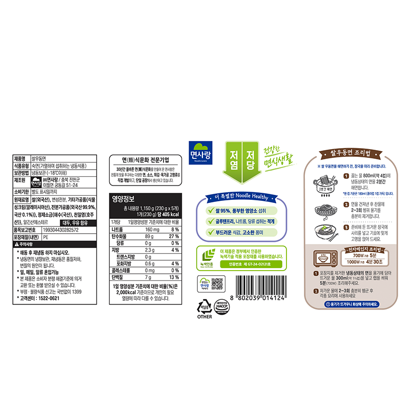 면사랑 쌀우동면(230g*5개입 1.15Kg/EA)