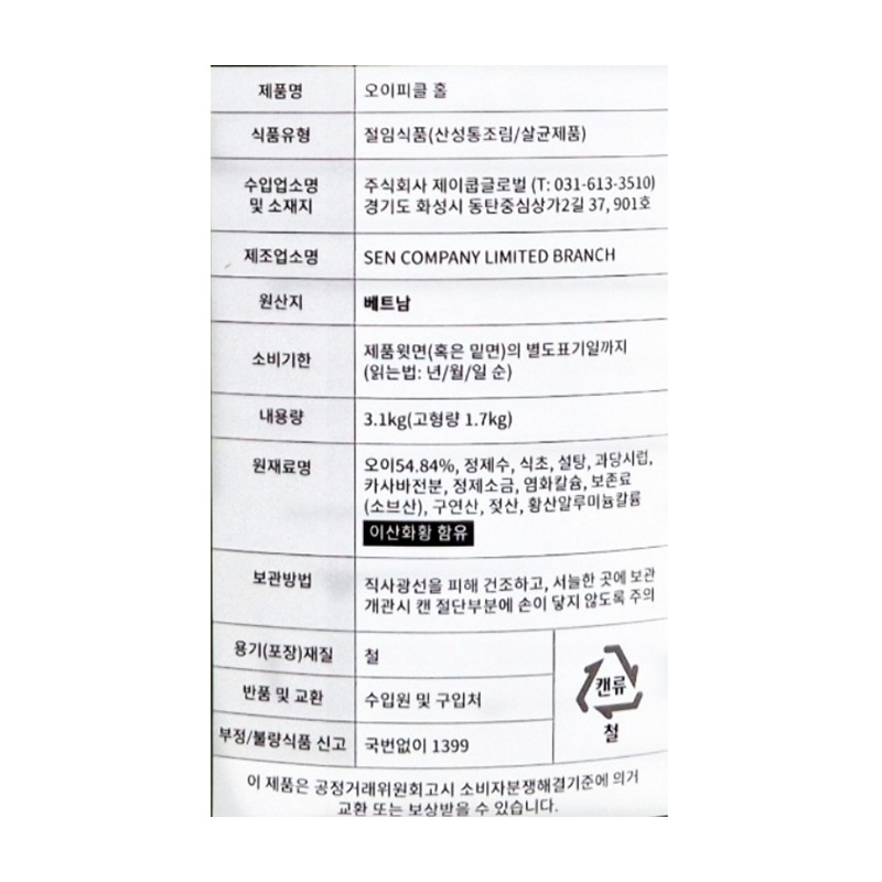 제이쿱글로벌 오이피클(홀 3.1Kg/EA) 이미지