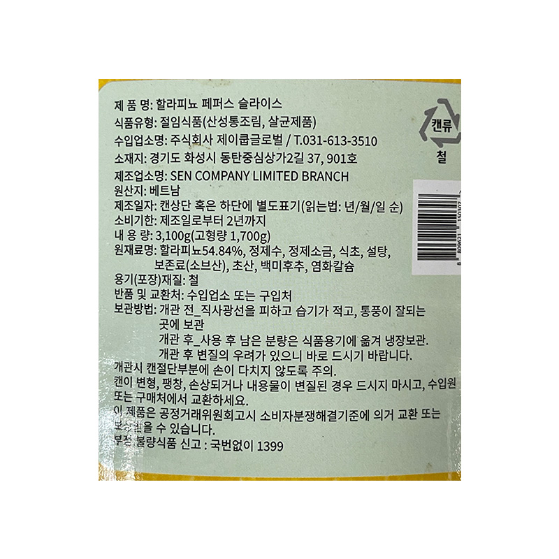 제이쿱글로벌 할라페뇨(슬라이스 3Kg/EA) 이미지