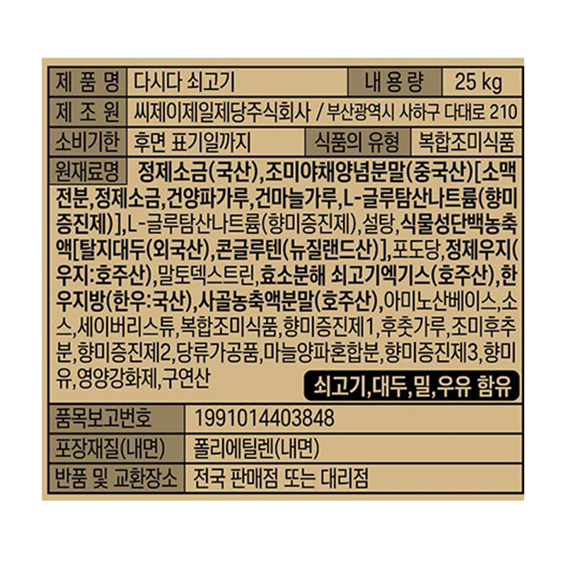 ★제당 초특가★백설 쇠고기 다시다 25Kg/EA 이미지