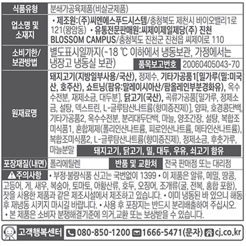 원재료명 및 함량