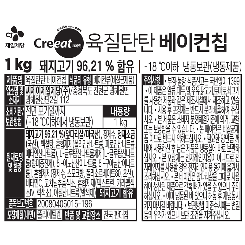★제당 초특가★크레잇 육질탄탄베이컨(칩 1Kg/EA) 전지 베이컨