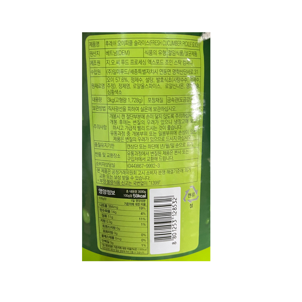 일미 후레쉬 오이 피클 슬라이스 3kg 대용량 업소용 일가 일가집 이미지