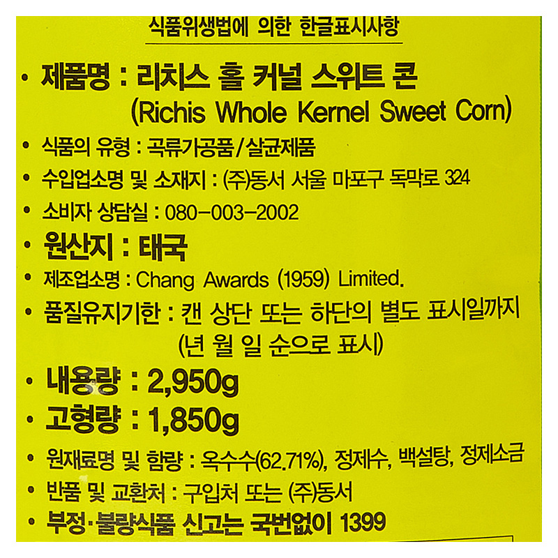 리치스 스위트콘(민생회복용 2.95Kg/EA)