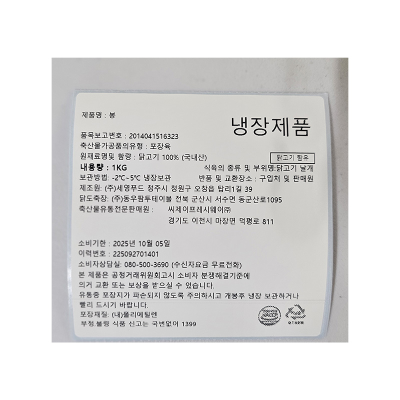 닭봉(45±5g/개_윗날개_껍질있음 1Kg/EA)