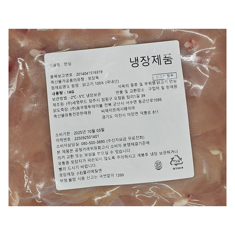 닭안심(30±5g/조각_껍질없음 1Kg/EA)