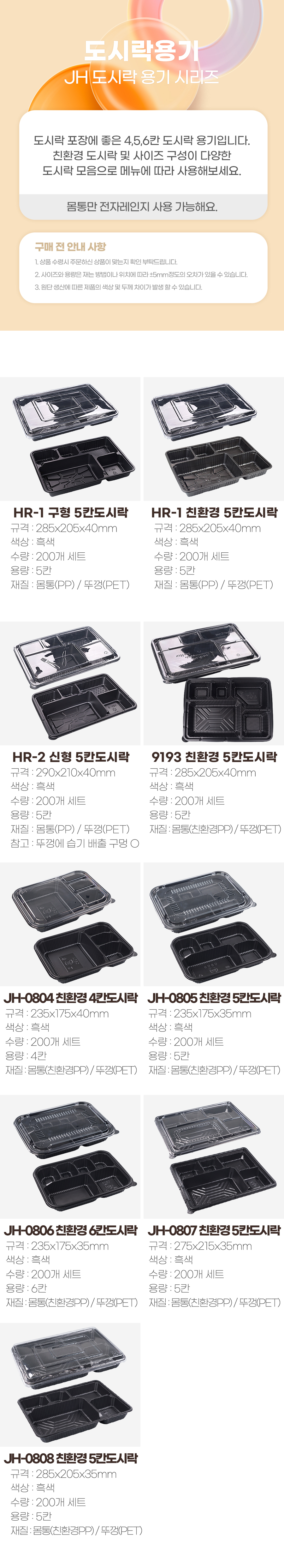 [오늘도착]JH 일회용 도시락용기 5칸 HR-1 구형 흑색 200개세트[합포장]