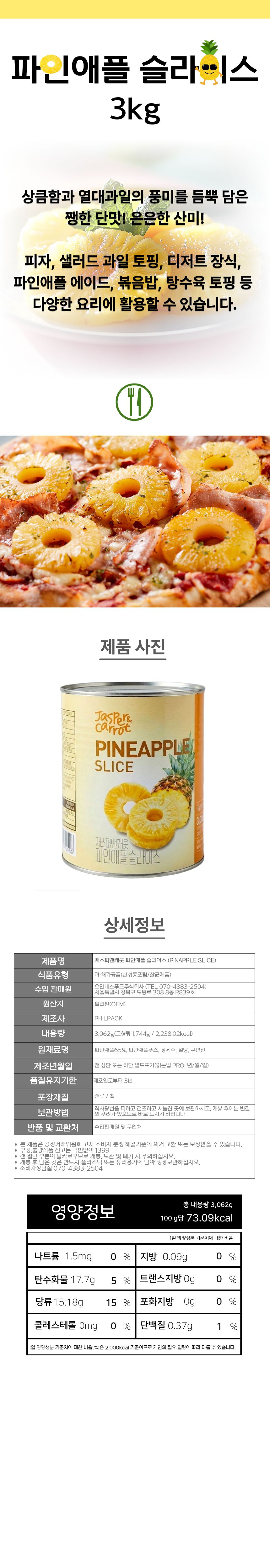 재스퍼앤캐롯 파인애플 슬라이스 3kg 통조림 대용량 이미지