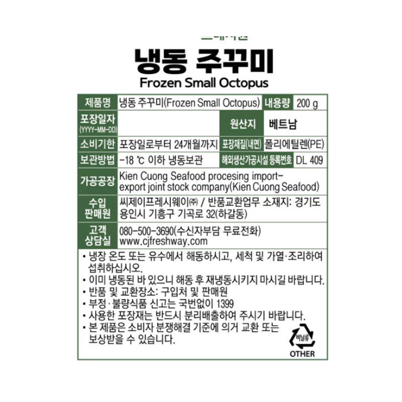♥수산특가♥프레시원 주꾸미(홀_15미 200g*12입 2.4kg/BOX)
