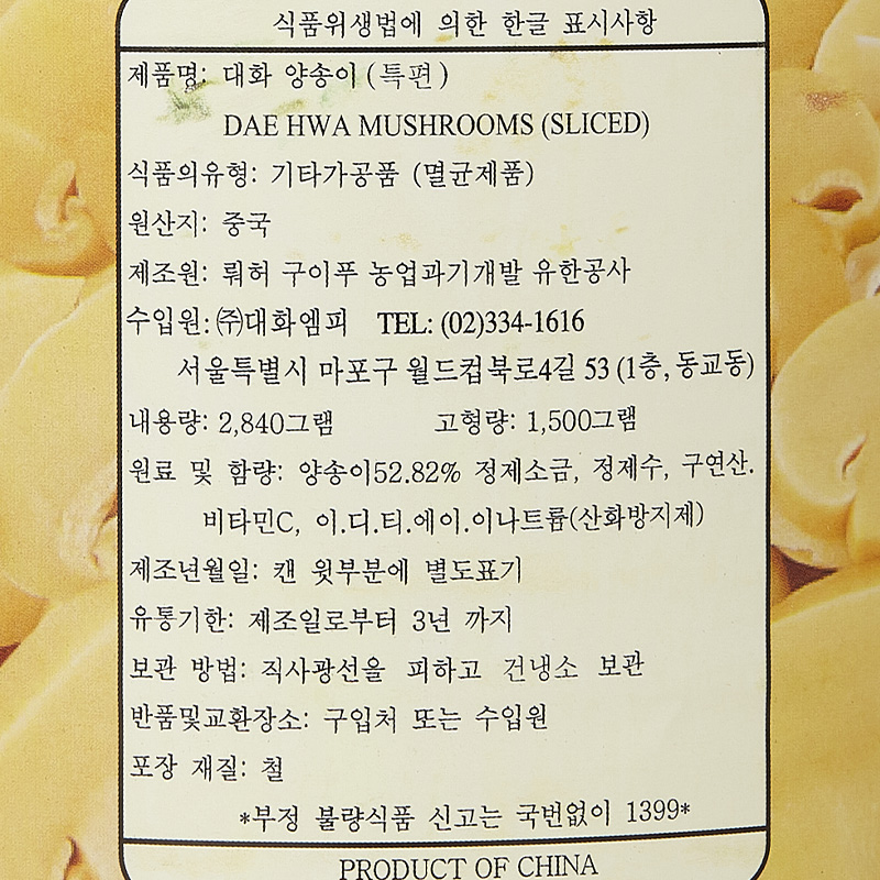단풍 양송이캔(특편_슬라이스 2.84Kg/EA) 이미지