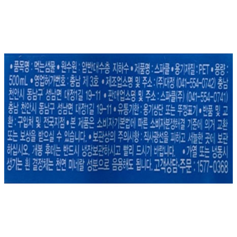 스파클 생수(500ml_무라벨 500g/EA)
