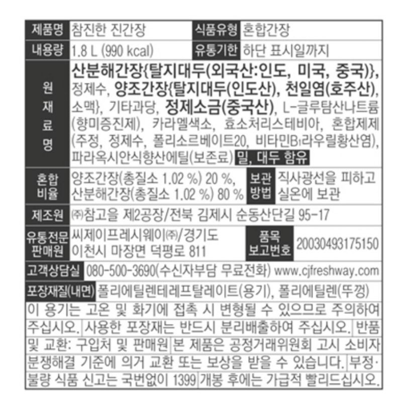 프레시원 진간장(1.8L 2.09Kg/EA) 이미지