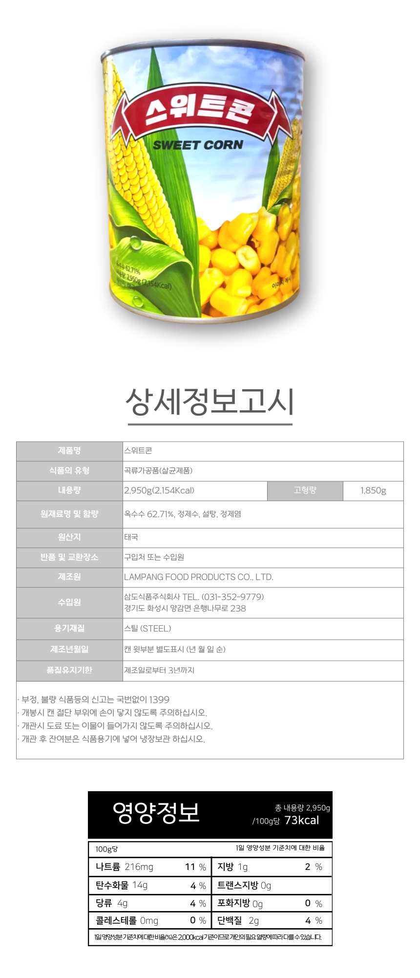 ★묶음 초특가★ 스위트콘 2.95kg 옥수수 캔 통조림 이미지