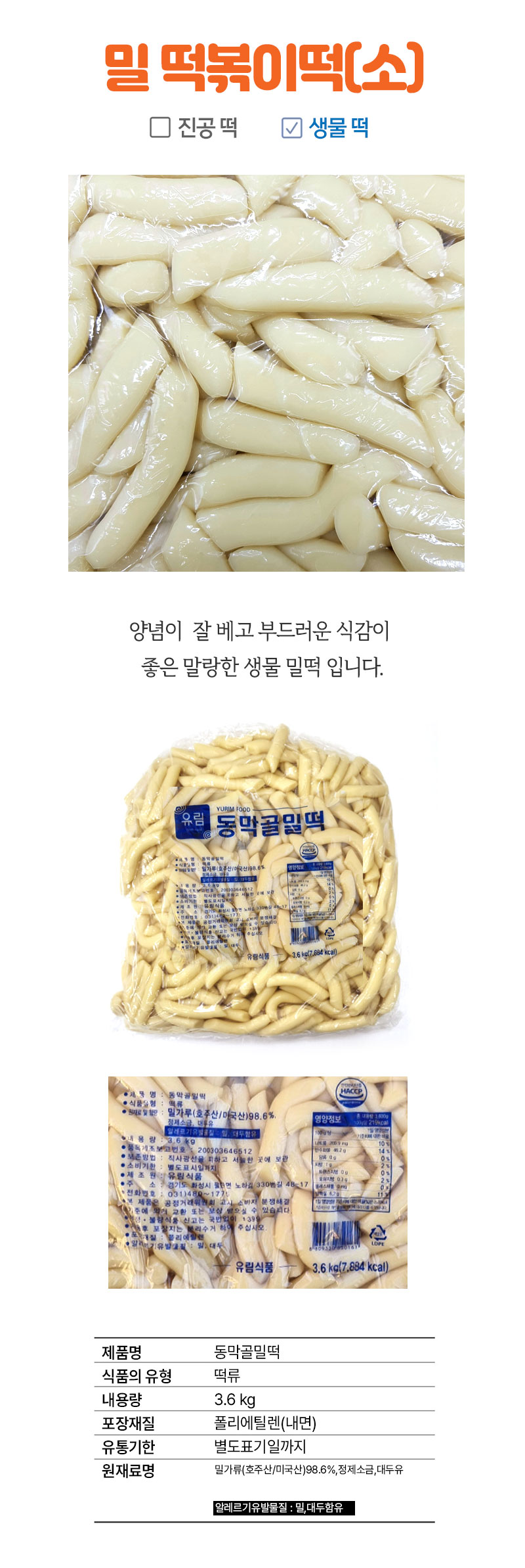 간단설명 : 많이 사용하는 떡볶이 밀떡으로 주문과 동시 당일 만들어낸 말랑말랑한 밀떡입니다.