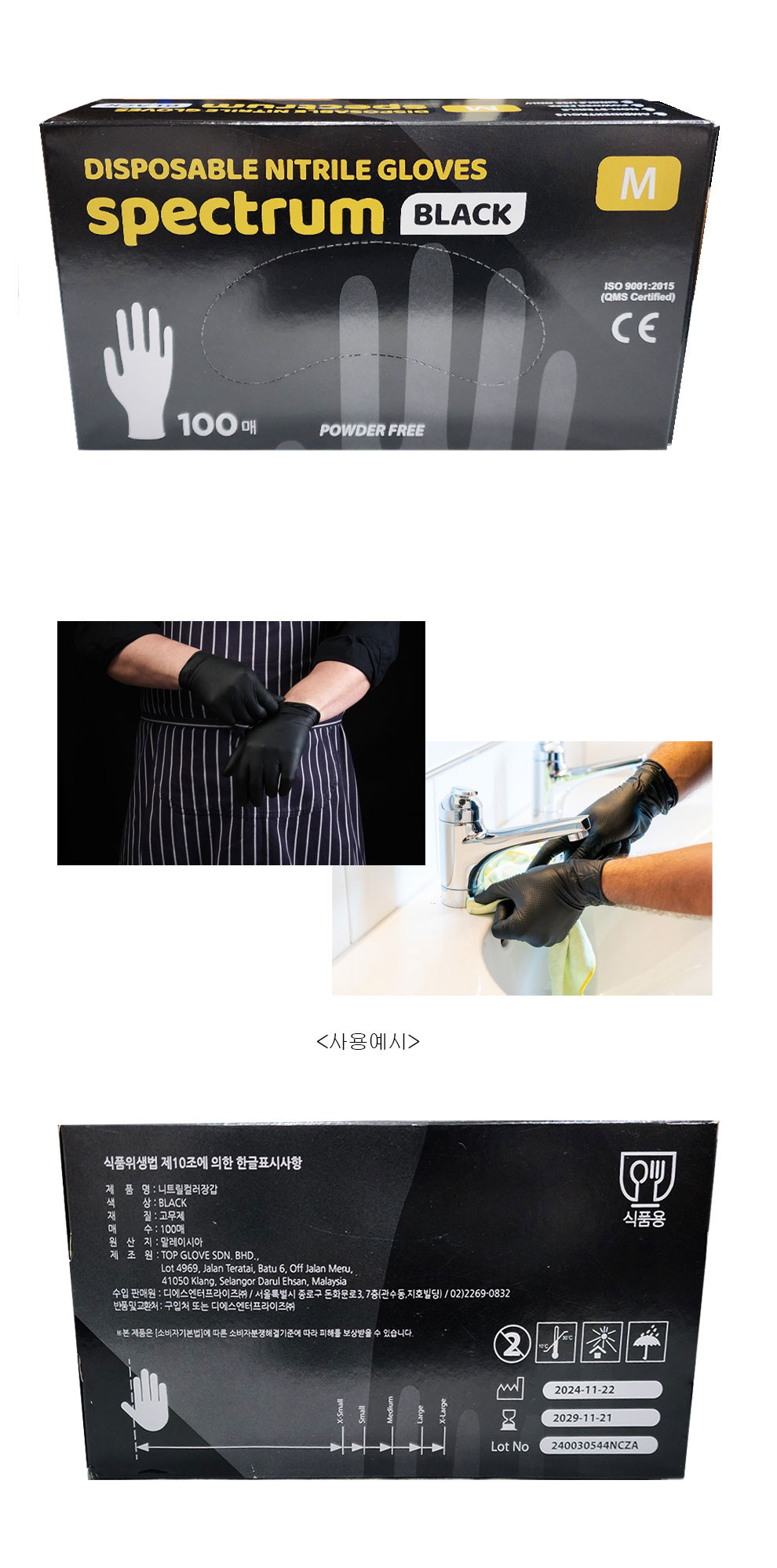 니트릴장갑 스펙트럼 M 중형 식품용 100매