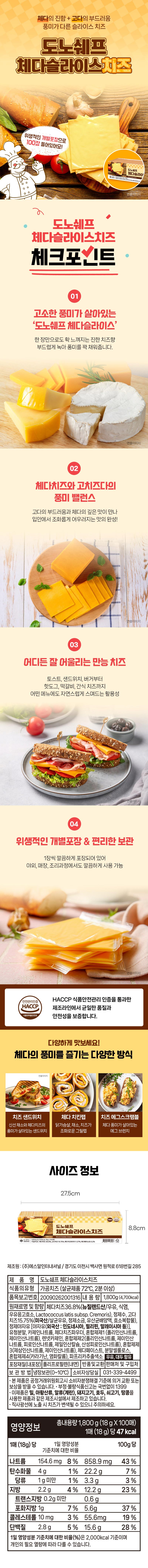 ★초특가★ 도노쉐프 체다치즈(슬라이스 개별포장 100매 1.8Kg/EA) 슬라이스치즈 체다 체다치즈 샌드위치