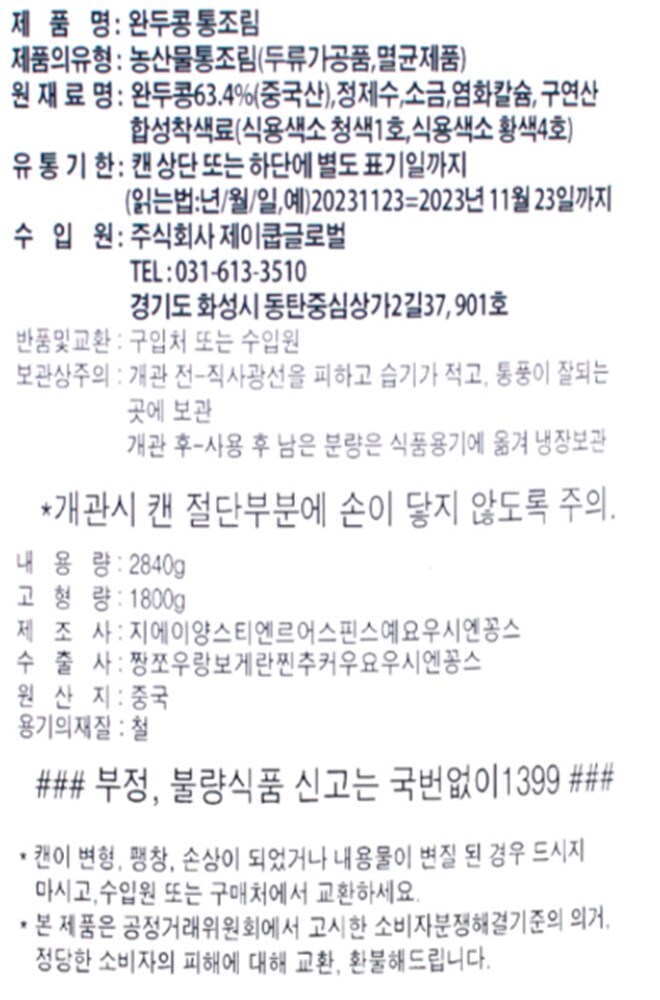 통조림, 음료 등의 캔 종류는 제품 특성상 배송중의 충격으로 불가피하게 찌그러짐과 긁힘이 발생 할 수 있습니다.