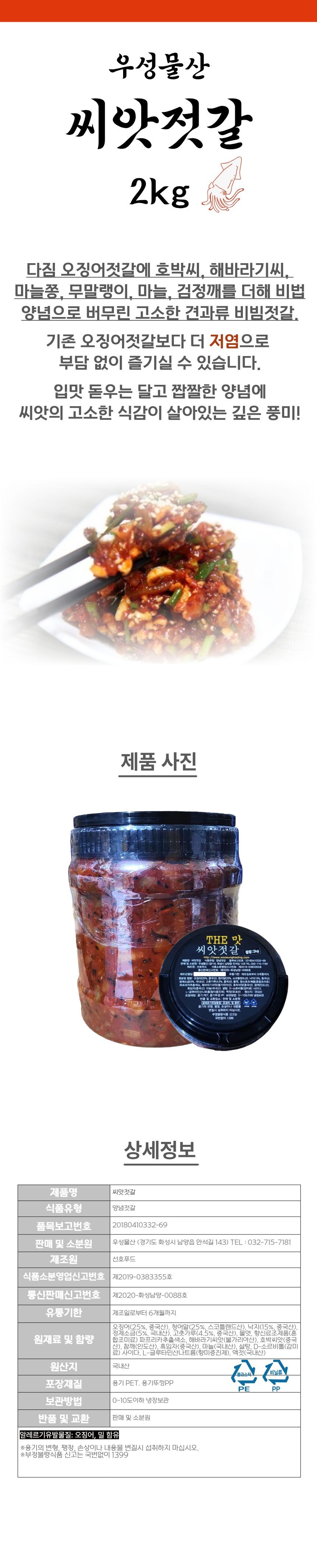 우성물산 씨앗젓갈 오징어젓갈 2kg